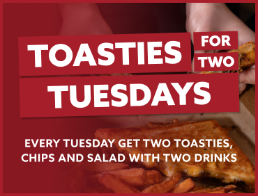 Two Toasties, Chips, Salad & Two Drinks - Every Tuesday!